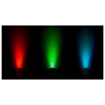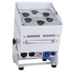 Projecteur LED alimenté par batterie, construit autour de 6 LED (10 W) RVB, blanc et ambre, pour éviter des ombres de couleur