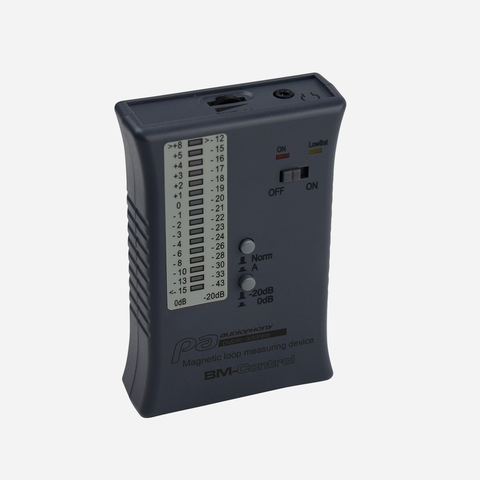 Cet instrument de mesure, manuel et ergonomique dispose de deux fonctions de mesure calibrées et de deux types de filtres pour évacuer les bruits de fond et l’intensité du champ magnétique. À l’aide d’un écouteur, le BM-Control vous permet d’écouter et de contrôler l’installation de votre boucle magnétique.
