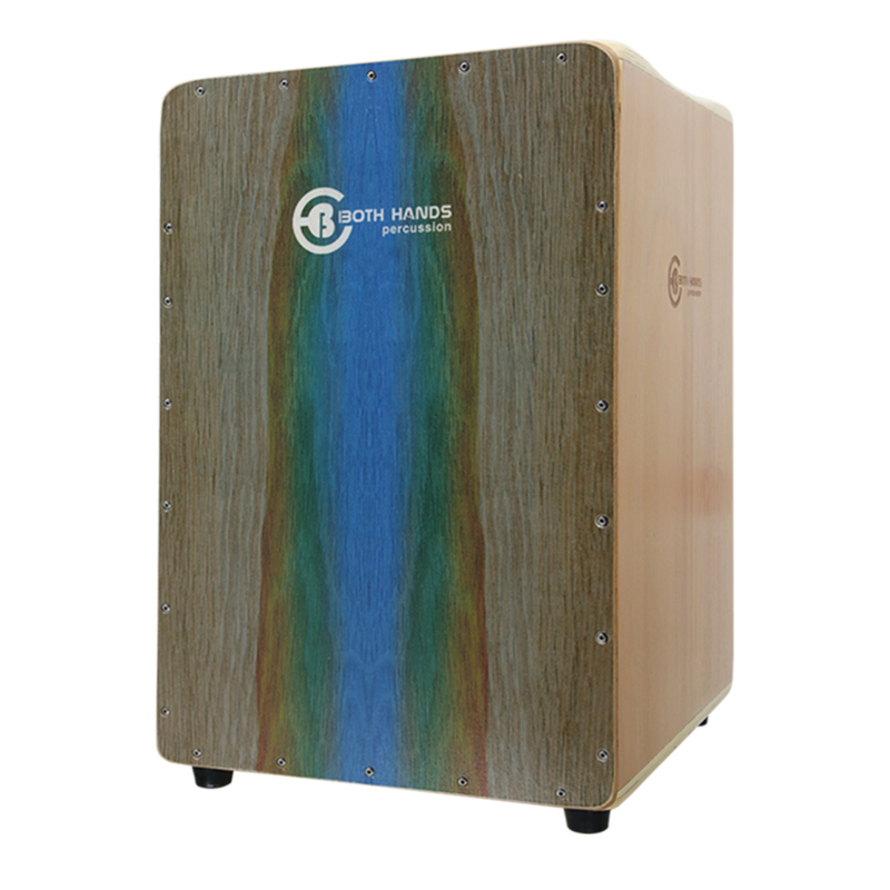 Le BOTH HANDS AP67 est un cajon Racu au format 31 × 32 × 48 cm, avec une finition dégradé teck/bleu/vert.
