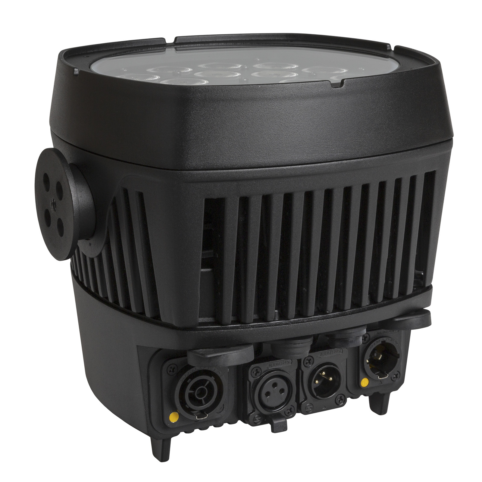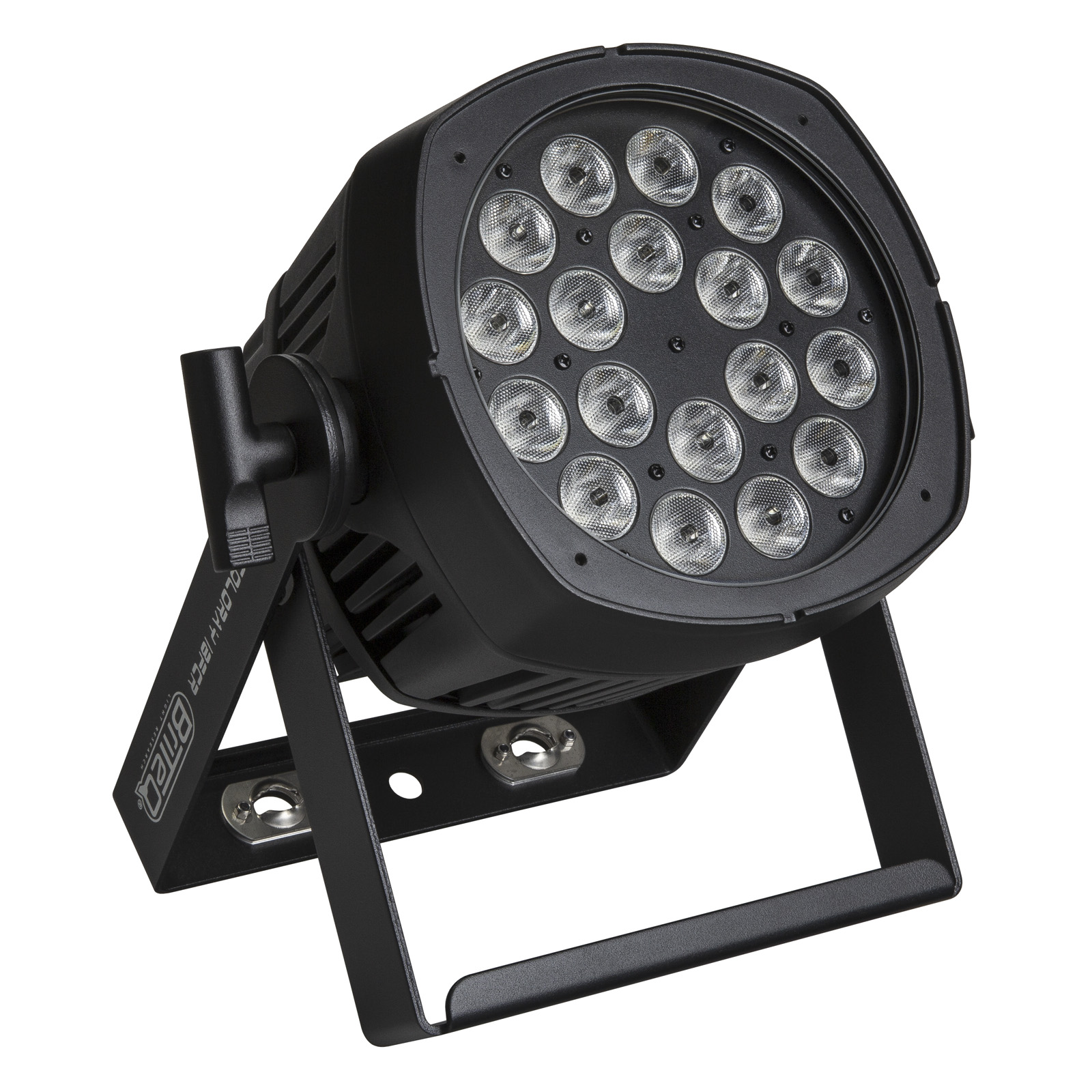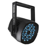 Projecteur IP65 à LEDs RGBW 18 x 8 W, avec angle de faisceau de 20°. Refroidissement par ventilateur