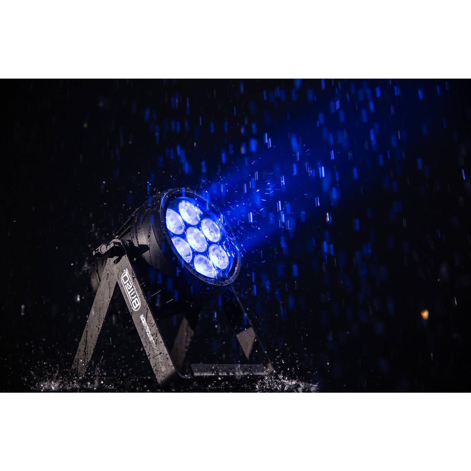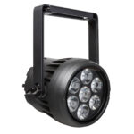 Projecteur compact IP65, puissant et polyvalent, conçu pour l’extérieur. Fonctionne sur batterie avec 7 LED RGBL de 10 W, offre jusqu’à 10 heures d’autonomie. Contrôle sans fil W-DMX G4S intégré ou via DMX/XLR. Faisceau 14° modulable à l’aide du filtre frost inclus. Refroidissement totalement silencieux et écran OLED intuitif