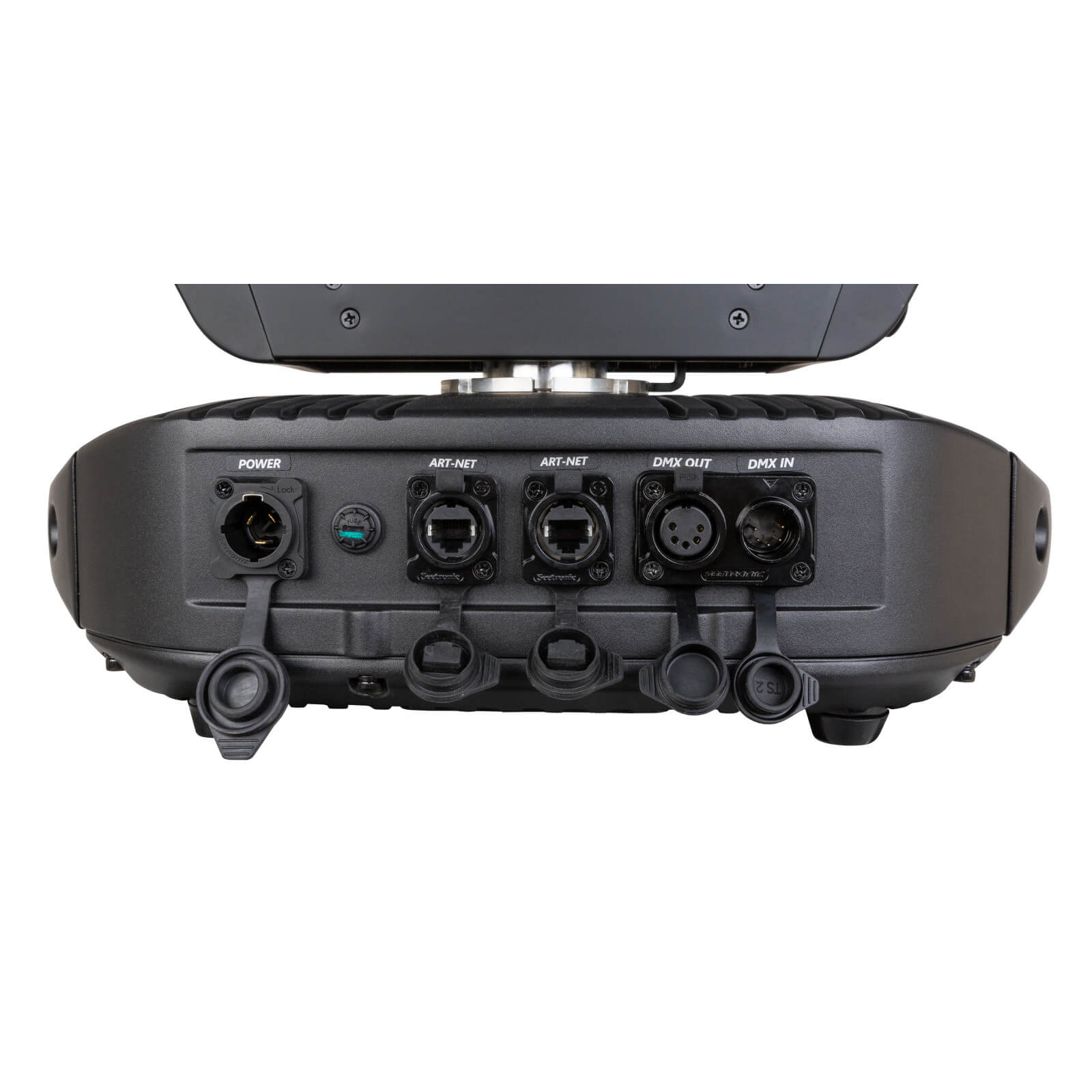 • Entrées/sorties DMX 5 broches + entrées/sorties RJ45 + compatible powerCON TRUE1.