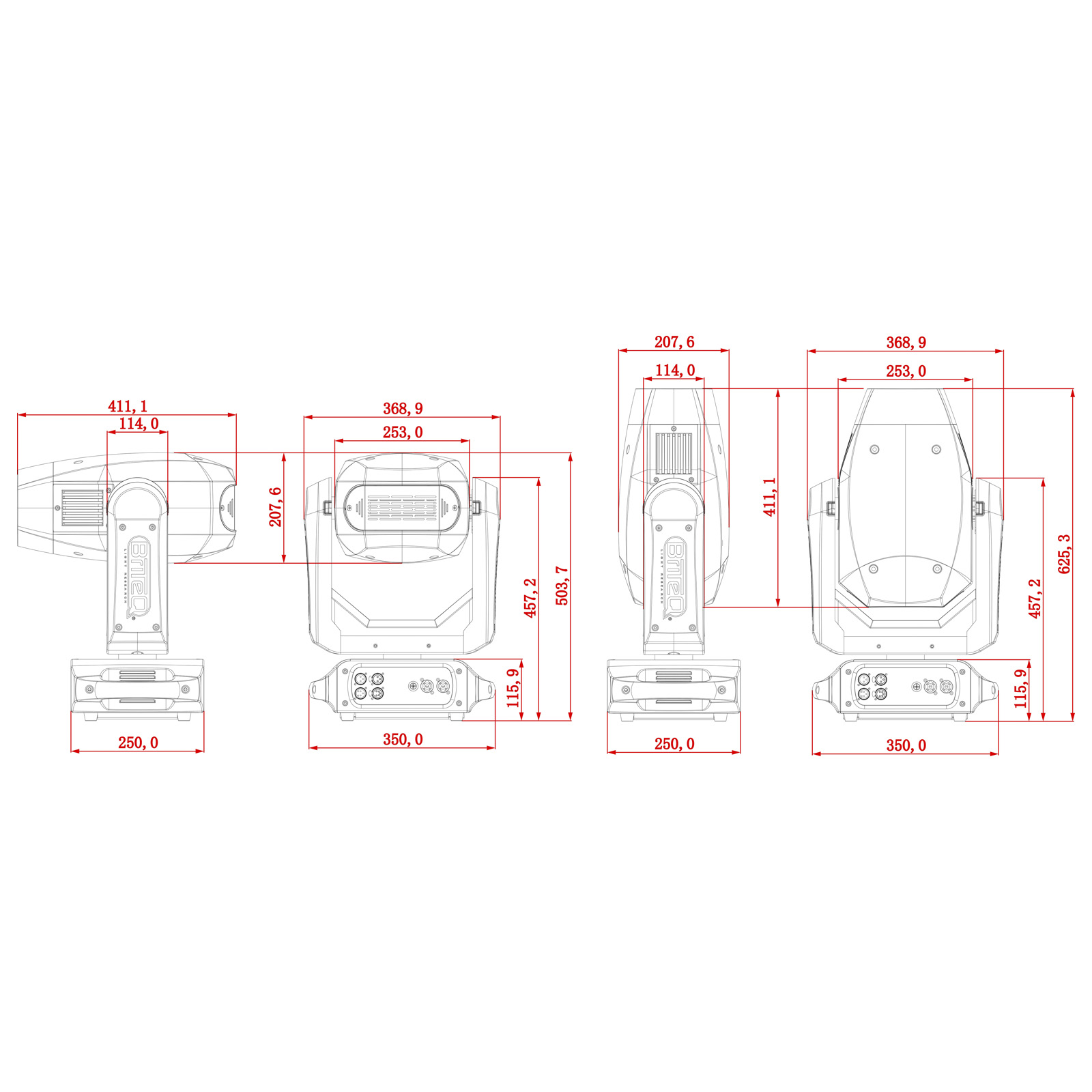 - Entrées/sorties DMX à 3 et 5 broches + entrées/sorties Neutrik PowerCON TRUE1 pour branchement en série simple.
