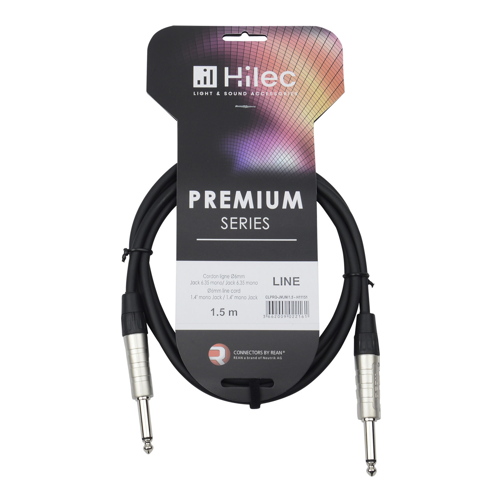 Cordon ligne Ø6mm Jack mâle mono / Jack mâle mono avec connecteurs REAN – 1,5m