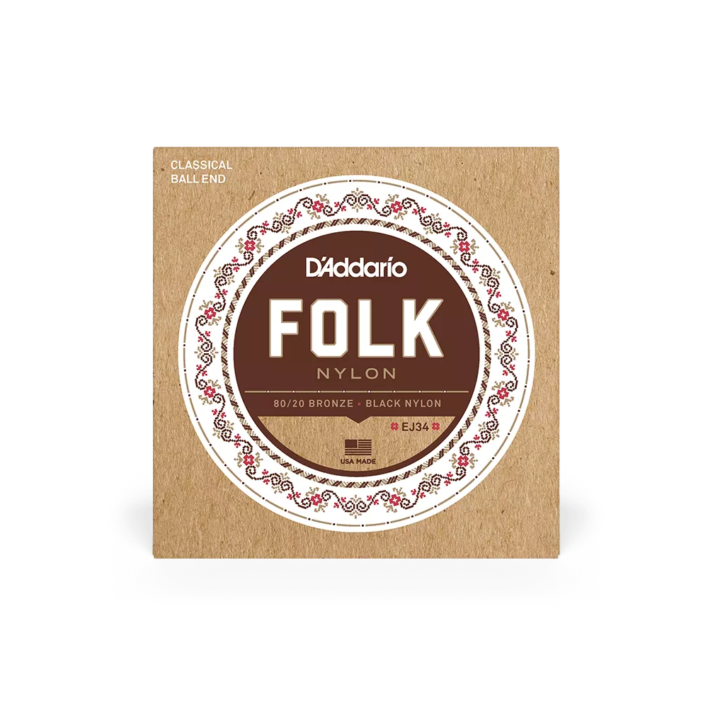Le D’Addario EJ34 est un jeu de 6 cordes pour guitare classique avec extrémités à boule. Il associe des cordes aiguës en nylon noir à des cordes basses en bronze 80/20, en tension normale.