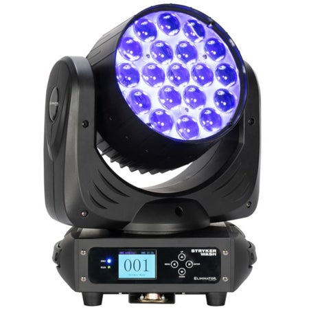 ELIMINATOR Stryker Wash – Lyre wash 228 W, 19 LEDs RGBW avec zoom motorisé 6°–50°.