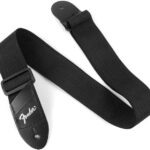 Fender 099-0606-049 – Sangle polyester noire, logo or + poche médiators