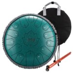 Le HLURU – TWH15-12MALACHITE est un tambour à langue en acier de 12 pouces doté de 15 notes, conçu comme un véritable instrument de percussion à main. Issu du savoir-faire de HLURU, fabricant reconnu d’instruments de guérison et de méditation, il est pensé pour produire des sons purs, éthérés et apaisants.