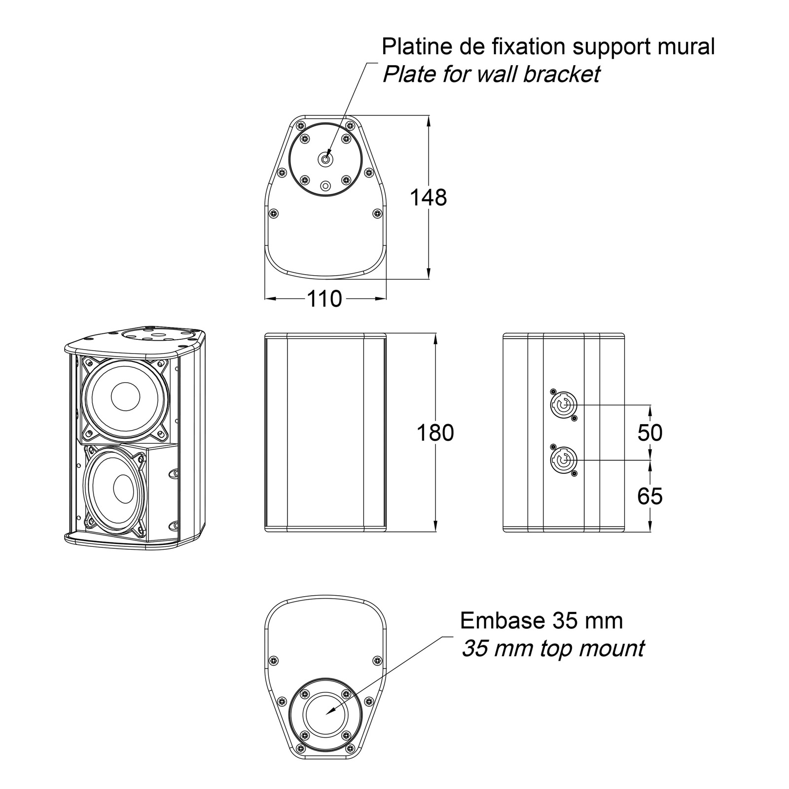 – Embase 35 mm pour pieds d’enceintes