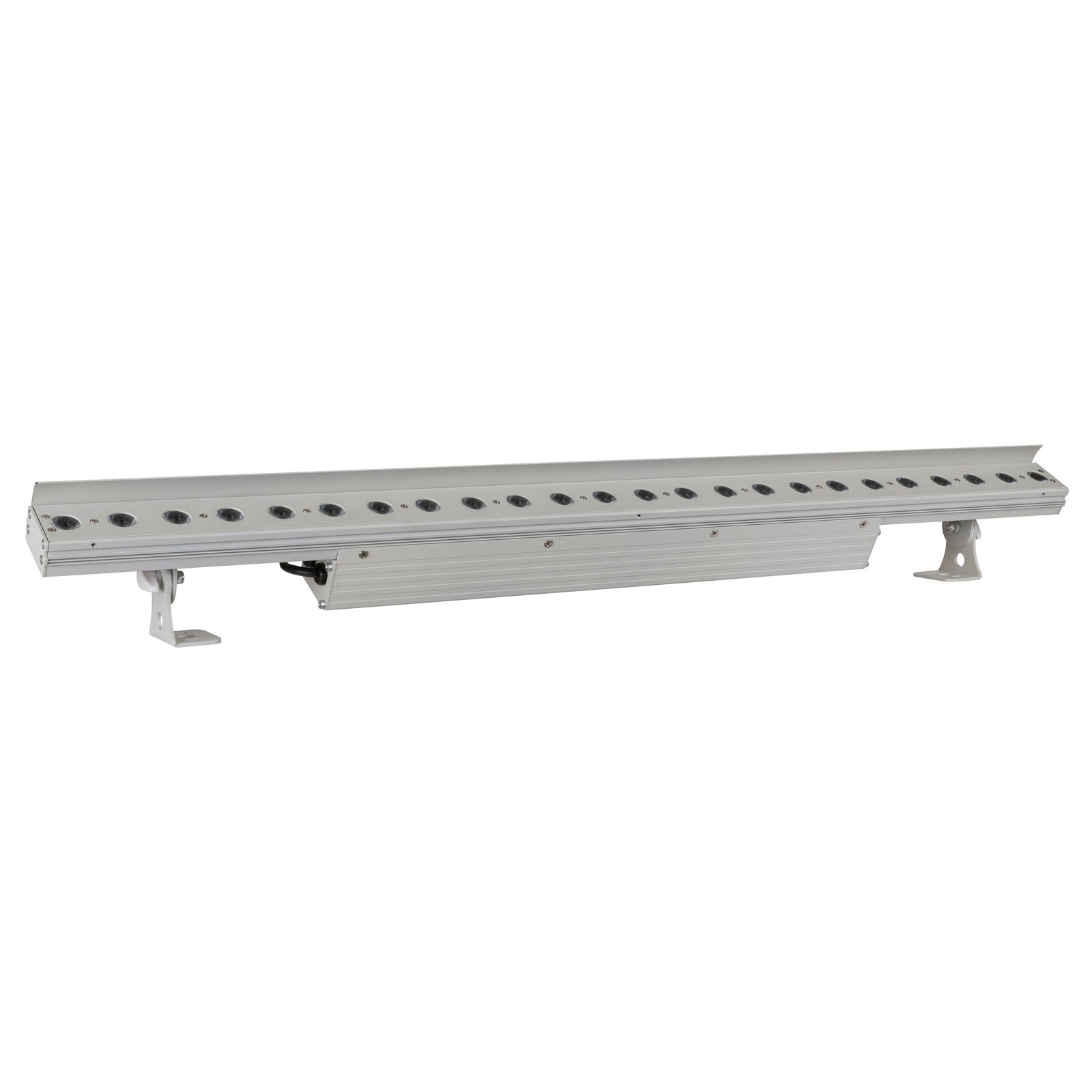 Puissant projecteur LED d’intérieur équipé pour les applications de type « lèche-mur ». Boîtier de 96cm de long équipé de 24 LED 4W RGBB, divisé en 4 sections.
