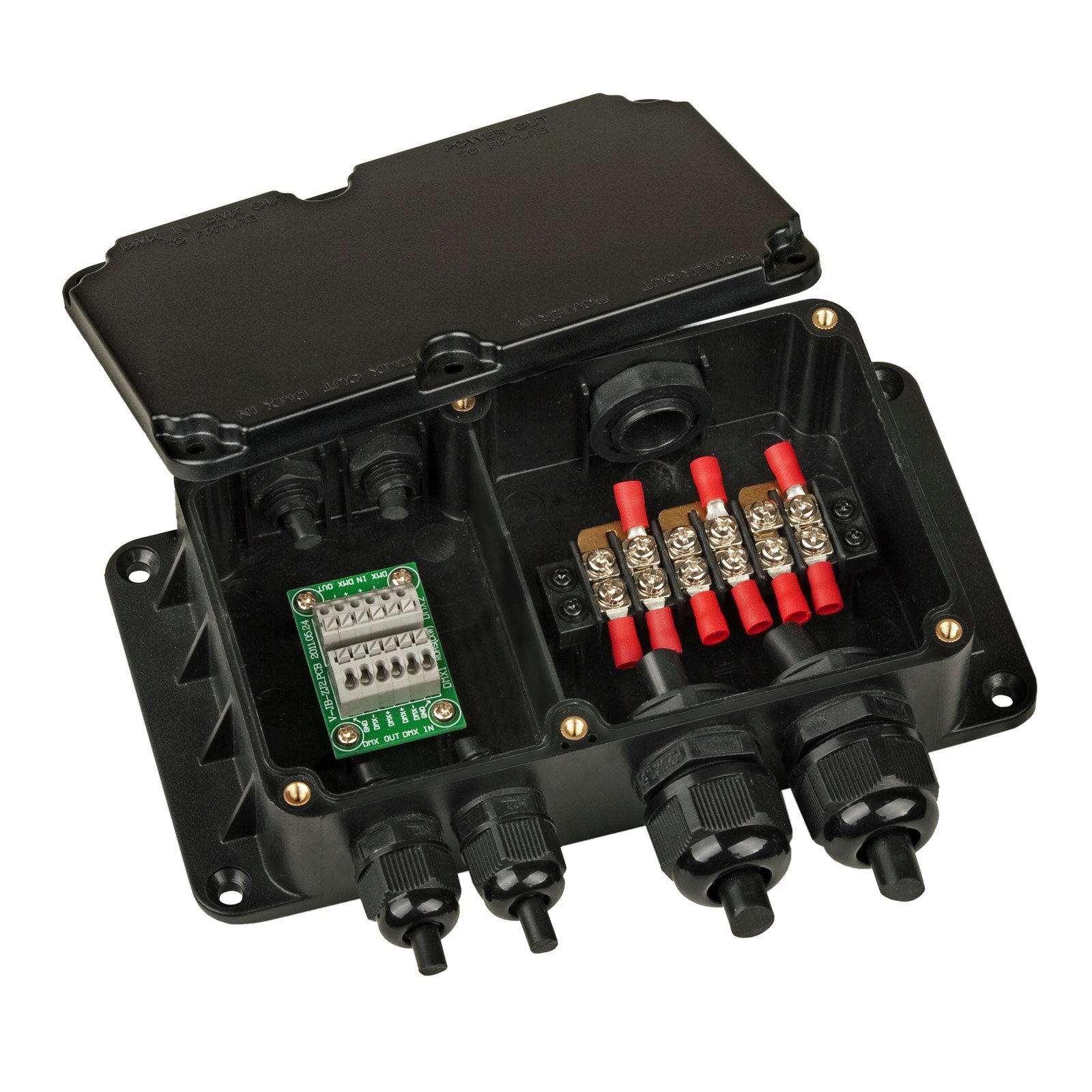 - Boîte de connexion étanche pour la série LDP et d’autres projecteurs DMX d’extérieur.