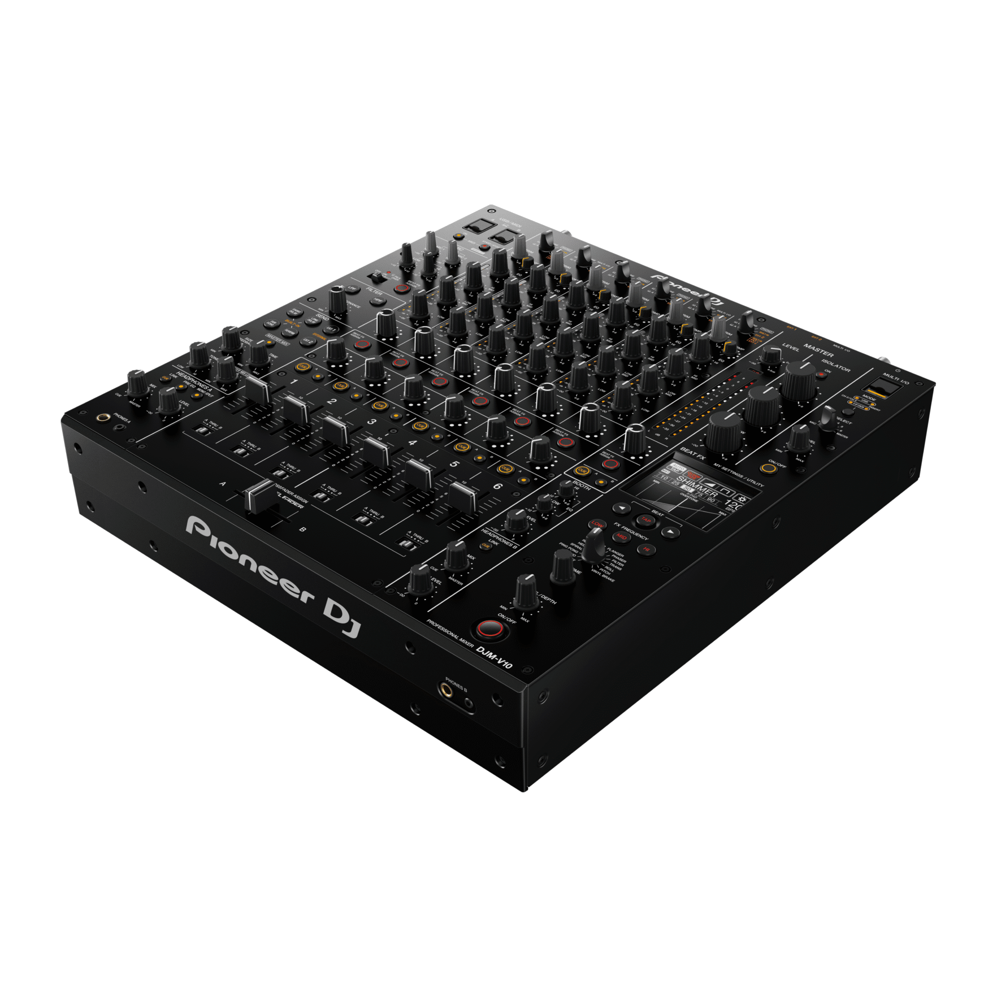 La Pioneer DJ DJM-V10 est une table de mixage professionnelle haut de gamme conçue pour les DJ exigeants. Dotée de 6 canaux indépendants, d’un égaliseur 4 bandes ultra-précis et d’une qualité sonore exceptionnelle, elle offre un contrôle créatif total sur ton mix. Pensée pour les performances les plus avancées, elle intègre également un compresseur sur chaque canal, une section Send/Return complète et une connectivité étendue compatible avec rekordbox, Serato DJ Pro et Traktor Pro.