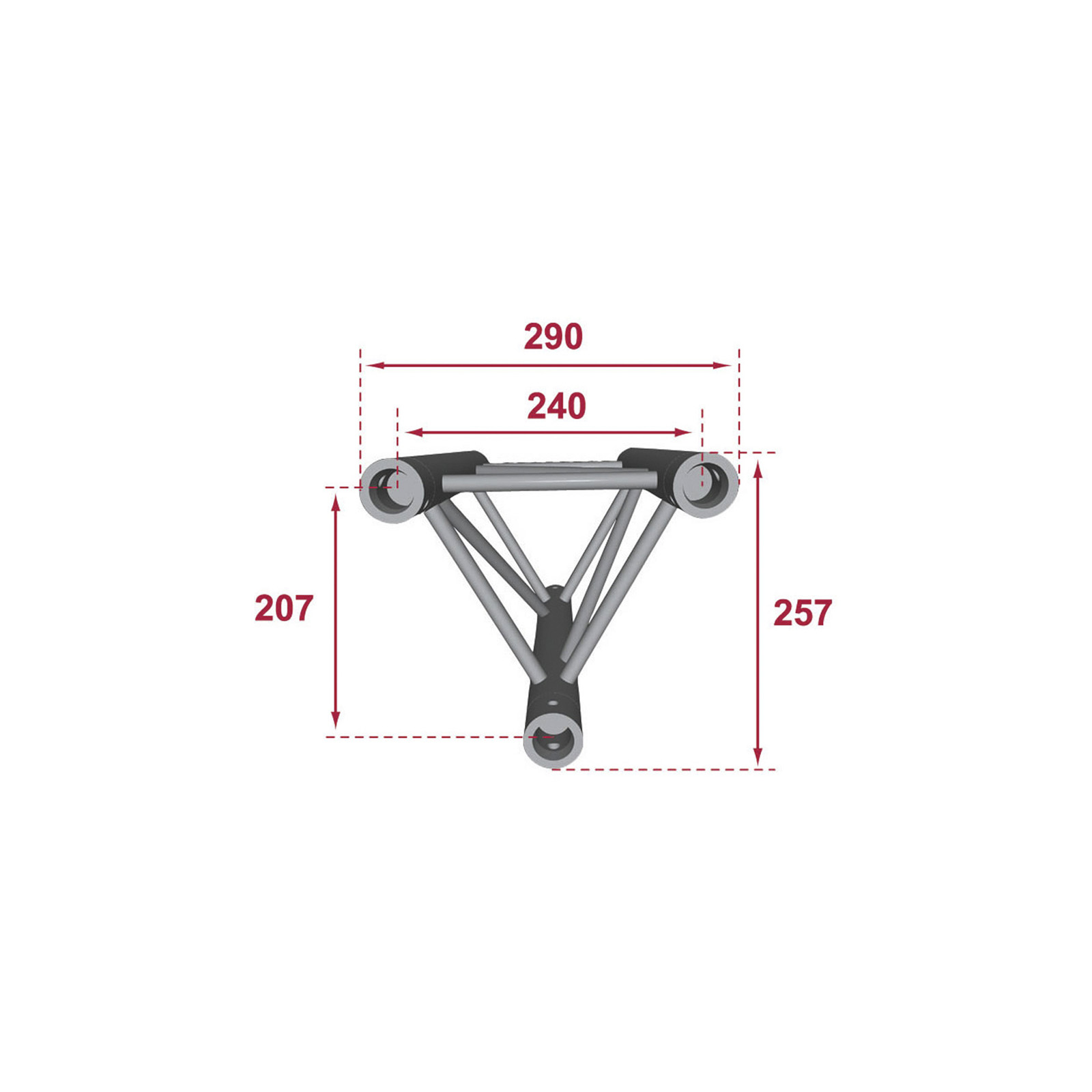 • Section triangulaire de 240 mm d’entraxe entre chaque tube (290 mm extérieur)