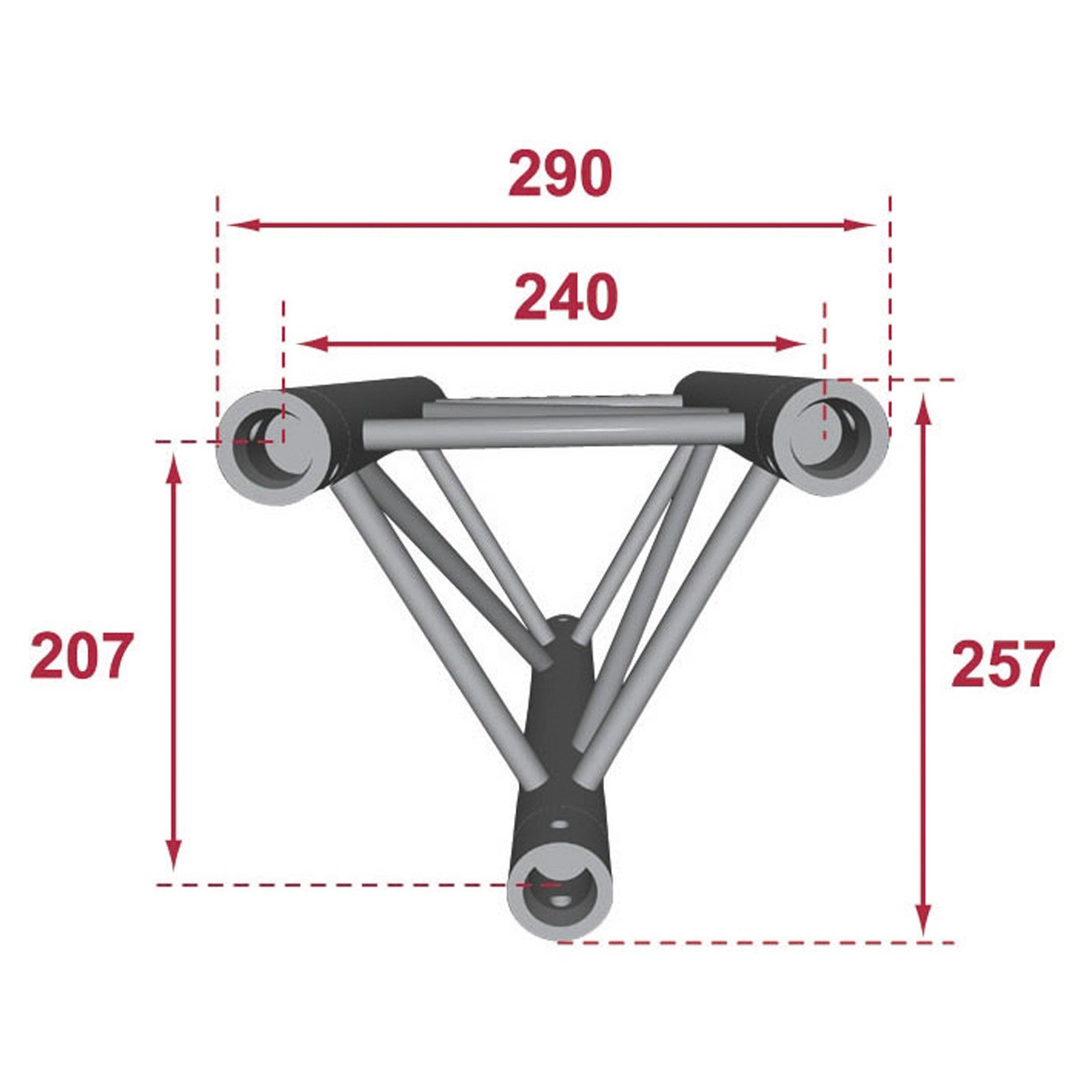 • Section triangulaire de 240 mm d’entraxe entre chaque tube (290 mm extérieur)