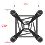 • Section carrée de 240 mm d’entraxe entre chaque tube (290 mm extérieur)