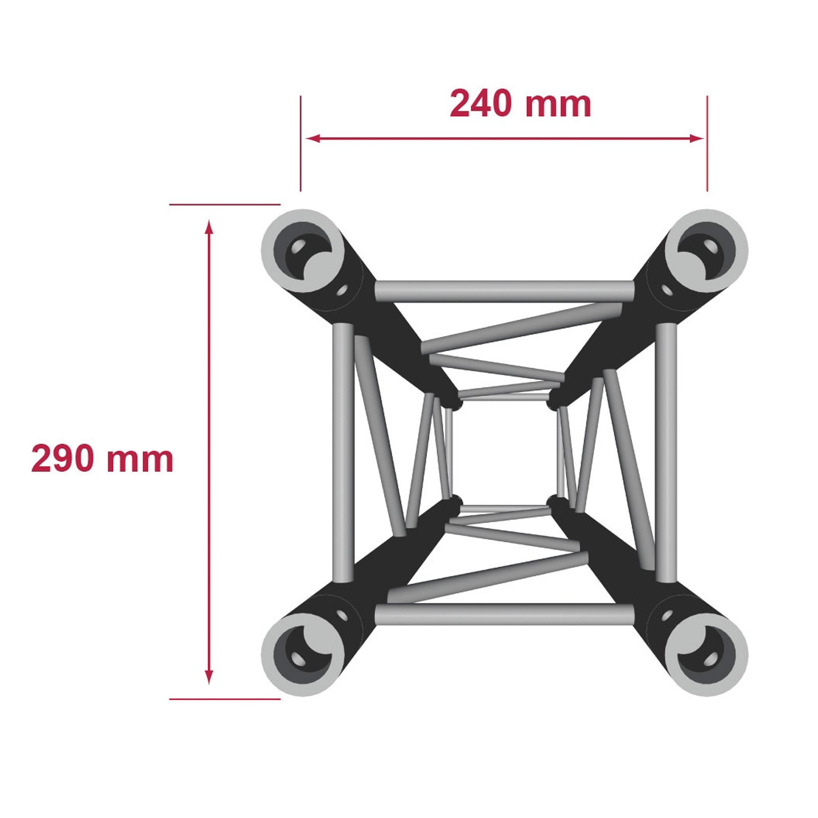 • Section carrée de 240 mm d’entraxe entre chaque tube (290 mm extérieur)