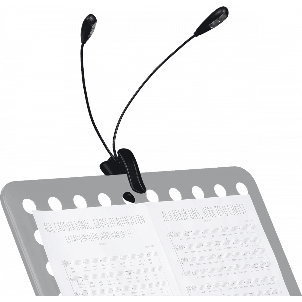 Son col de cygne et sa pince de fixation permettent de l’installer et de l’orienter facilement pour un éclairage précis des partitions.