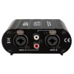 DI-box stéréo passive assurant la conversion de signaux asymétriques en signaux symétriques. Transformateurs audio de haute qualité, connectiques RCA, jack/XLR et XLR 3 points. Conception sans composant actif avec commutateur ground lift indépendant par canal