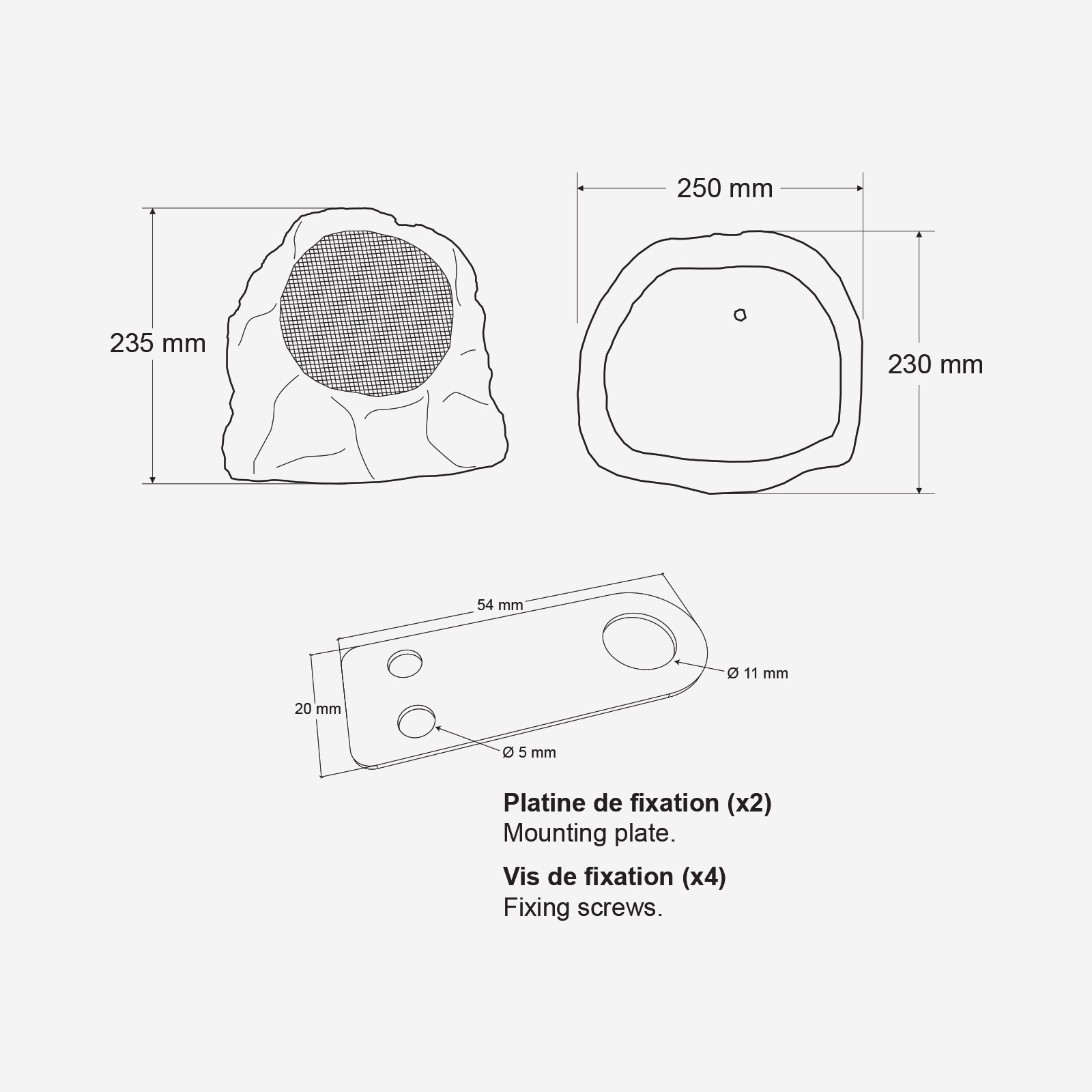 Enceinte d’extérieur IP66 imitation roche pour amplificateur 100 V ou 8 ohms