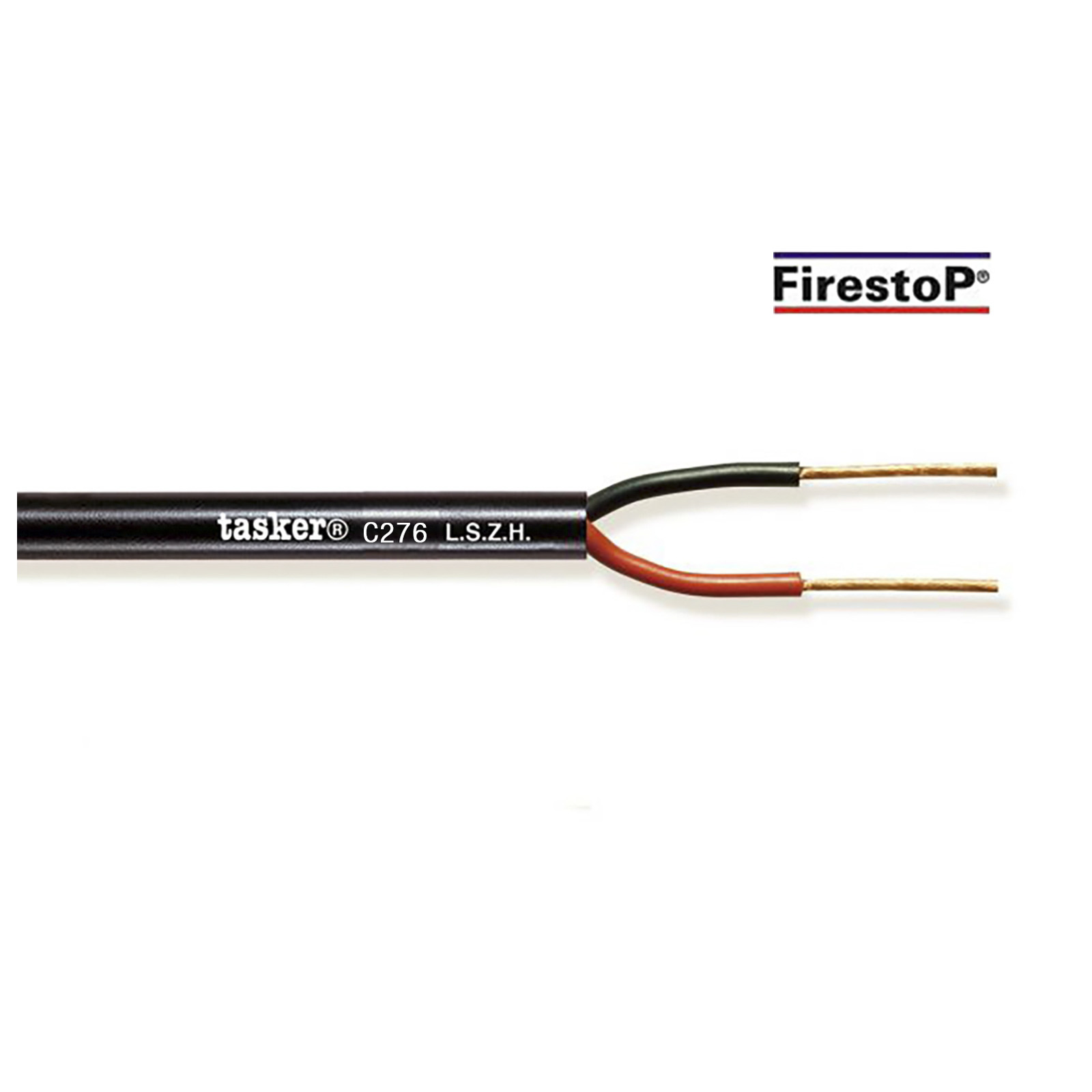 - TASKER L.S.Z.H. speaker cable (low smoke zero halogen), round, 2×2,5mm², black, reel 100m