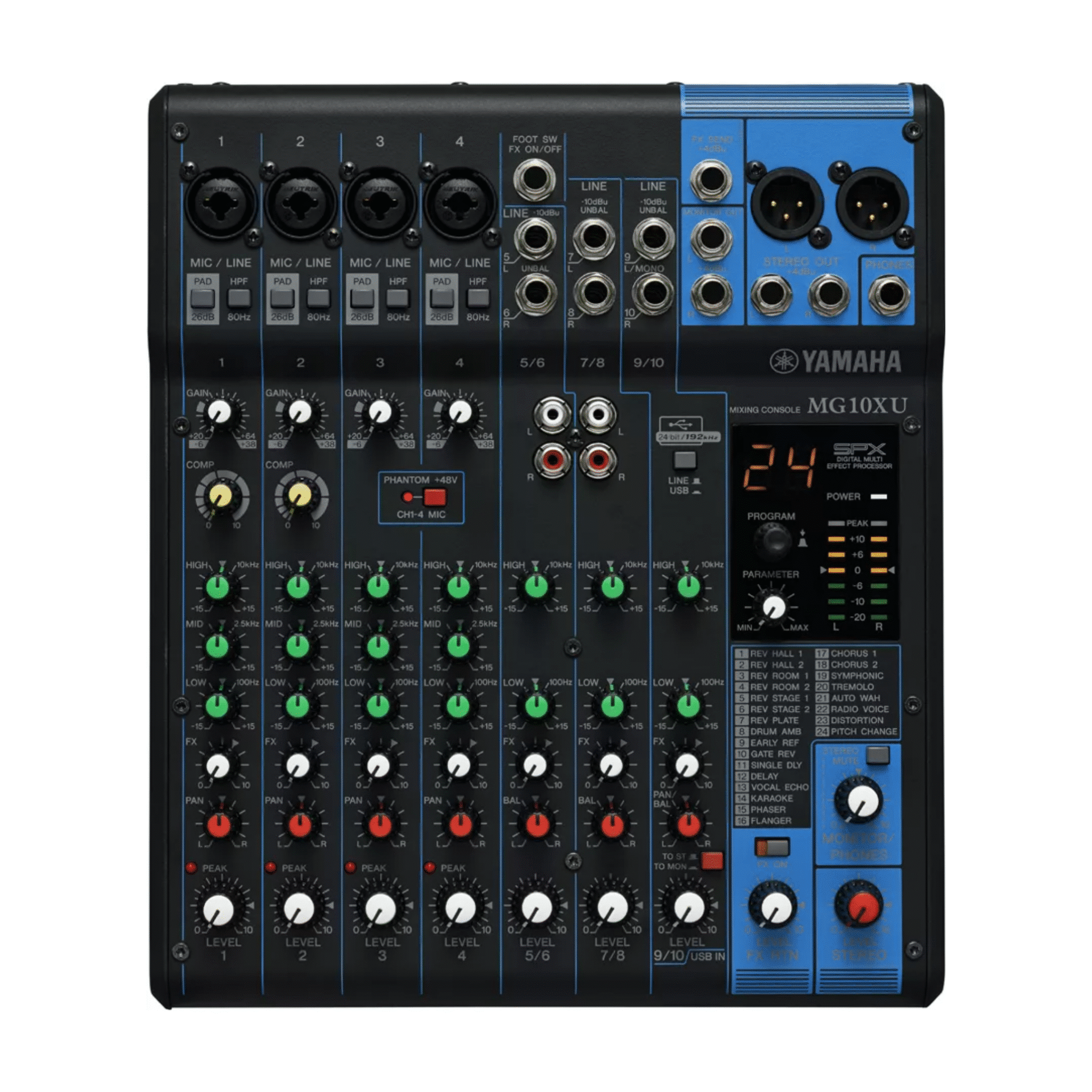 - Multi-effets numérique SPX : 24 effets éditables (réverbs, delays…)